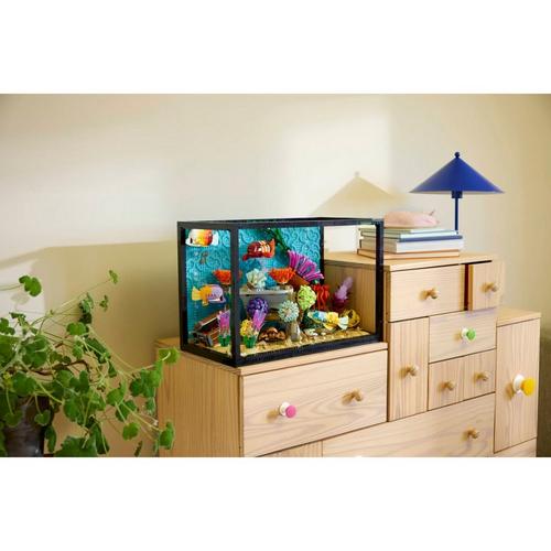 Dive into an immersive project with the LEGO® Icons Tropical Aquarium (10366) fish tank decor building set for adults. Craft a detailed LEGO interpretation of a vibrant underwater world, teeming with life and striking colors. Arrange each feature for the perfect look and display your creation in the home or workplace for all to enjoy.