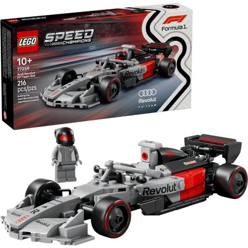 Boys and girls aged 10 and up can collect, build, display and race this LEGO® Speed Champions Audi Revolut F1® Team R26 Race Car (77259). An authentic display model of the brand new team joining the Formula 1® grid in 2026, this model also includes design details that comply with the updated F1 car regulations for the new season. This Audi Revolut F1® Team R26 Race Car toy features a cockpit, rear wing, authentic sponsor logos, front wheel suspension and tires imprinted with “Pirelli.” The toyvehicle also comes with a minifigure in an Audi Revolut F1® Team outfit and a helmet to place inside the cockpit and stage races. A great gift idea for kids and car fans, LEGO Speed Champions building sets let them create display models from an extensive range of iconic vehicles including other F1 cars (sold separately). They can also build with confidence using the LEGO Builder app – zoom, rotate in 3D and track progress with easy-to-follow digital instructions. Set contains 215 pieces.