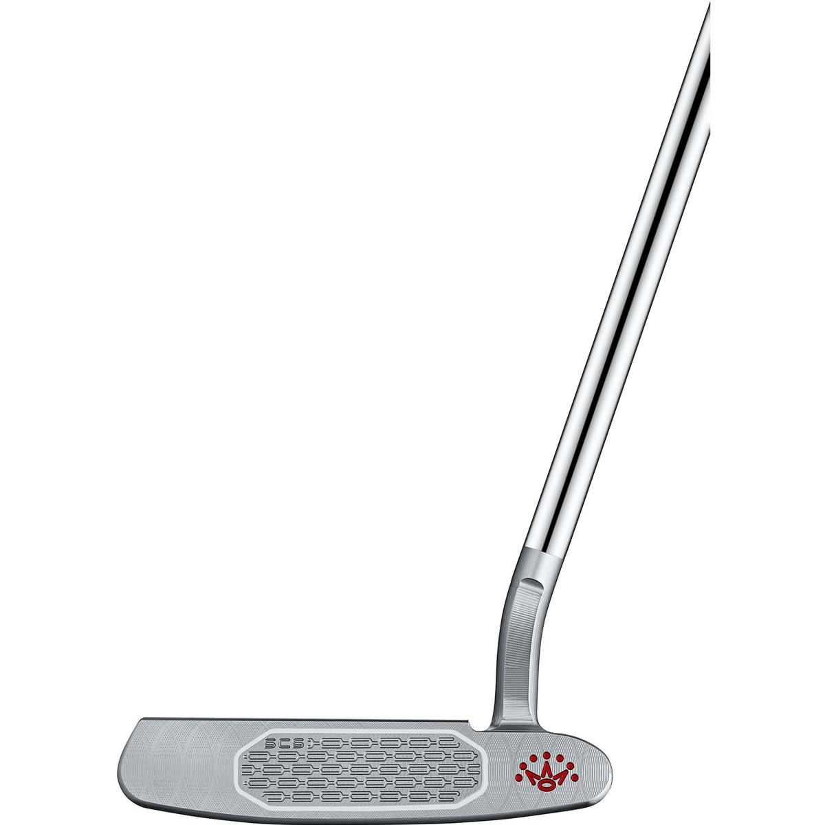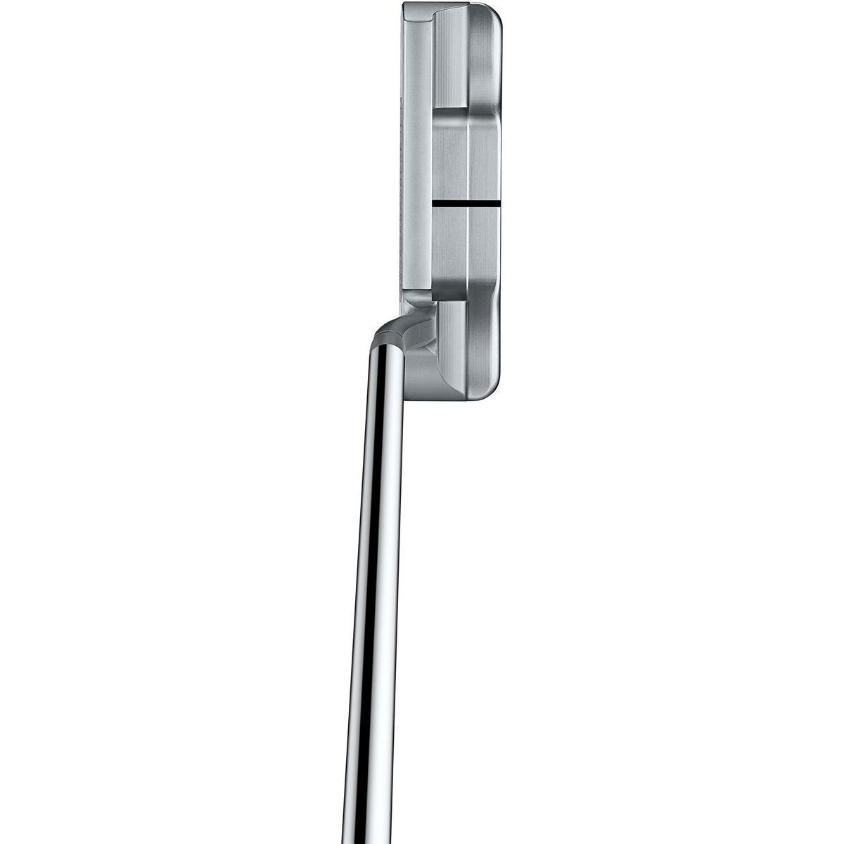 • Mallet putters have a larger head design with more perimeter weighting for a bigger sweet spot and added forgiveness. They are a good option for golfers with a straight-through putting stroke or beginners.