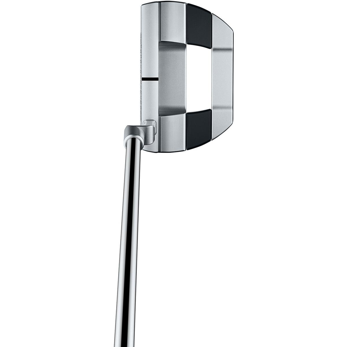 • Mallet putters have a larger head design with more perimeter weighting for a bigger sweet spot and added forgiveness. They are a good option for golfers with a straight-through putting stroke or beginners.