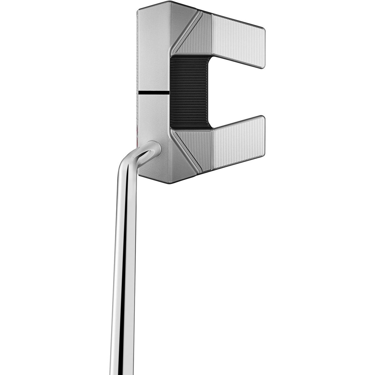 • Mallet putters have a larger head design with more perimeter weighting for a bigger sweet spot and added forgiveness. They are a good option for golfers with a straight-through putting stroke or beginners.