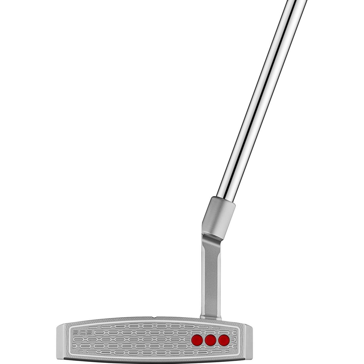 • Mallet putters have a larger head design with more perimeter weighting for a bigger sweet spot and added forgiveness. They are a good option for golfers with a straight-through putting stroke or beginners.