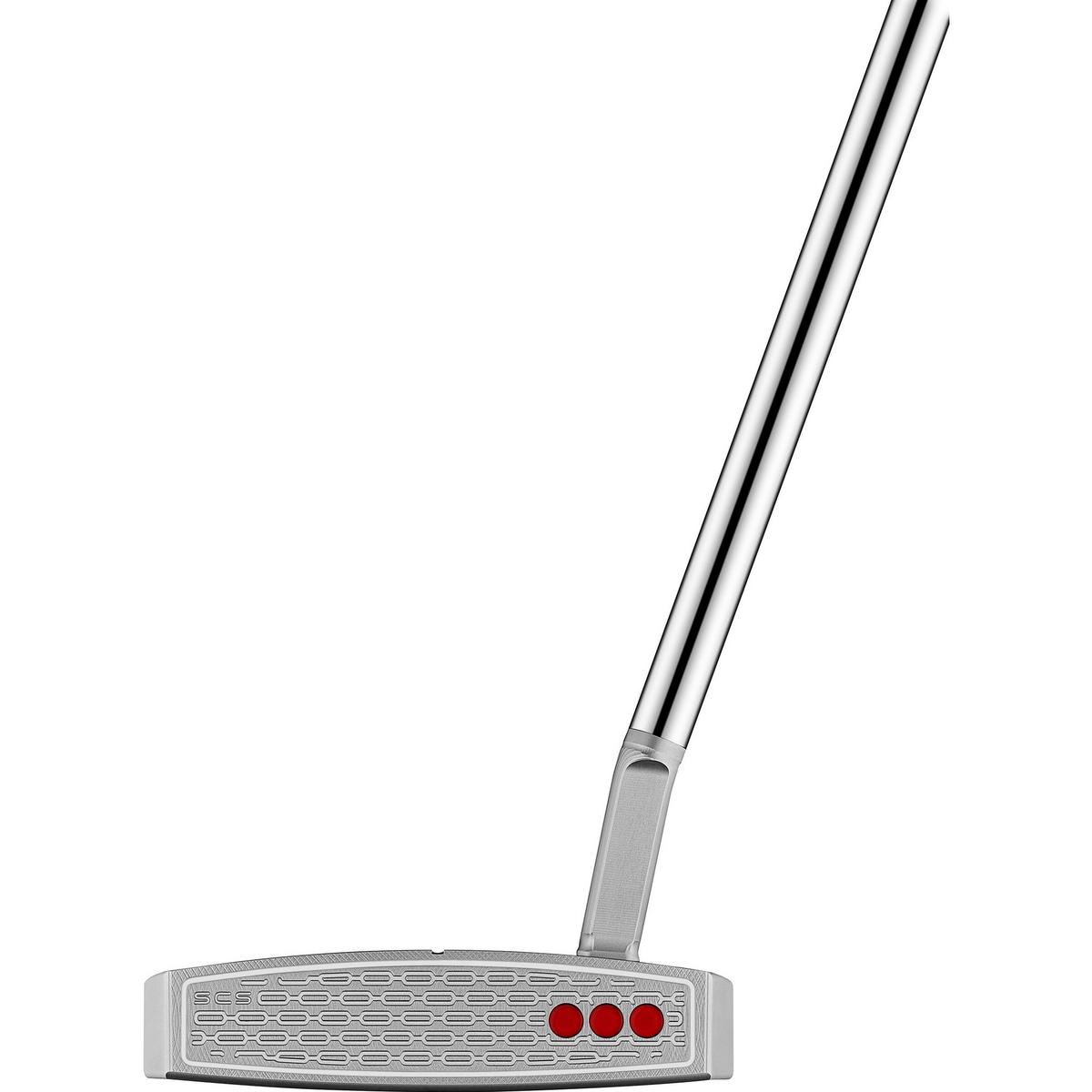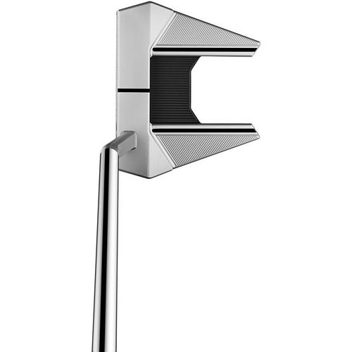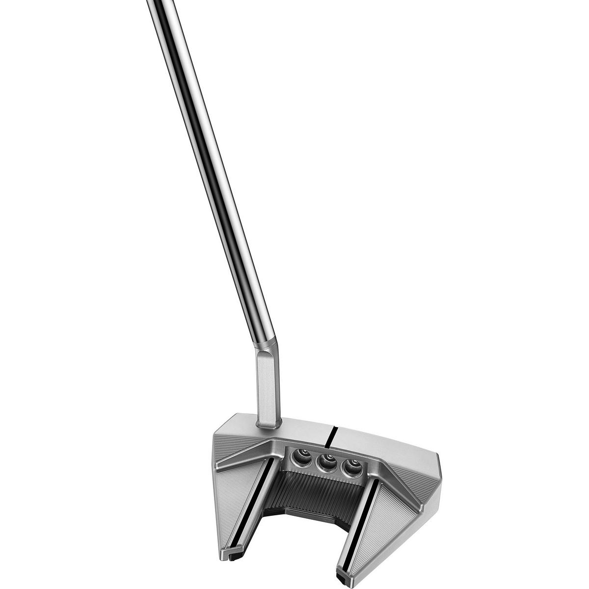 • Mallet putters have a larger head design with more perimeter weighting for a bigger sweet spot and added forgiveness. They are a good option for golfers with a straight-through putting stroke or beginners.